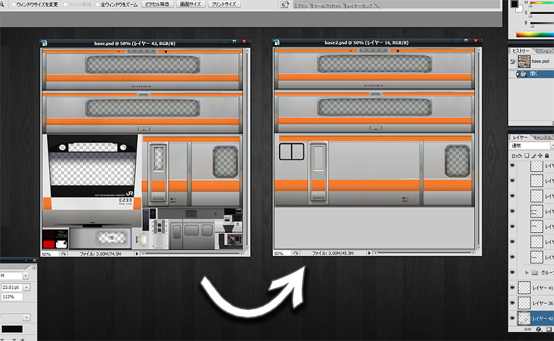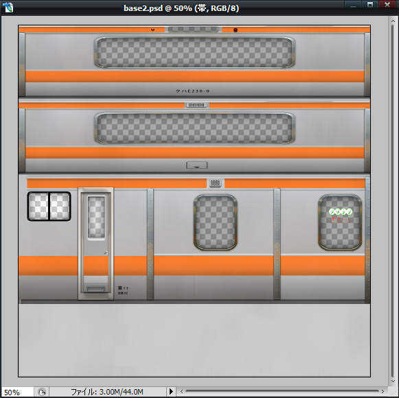 E231系の改造で作っているので、当然テクスチャを描き直さなければいけないのですが、
