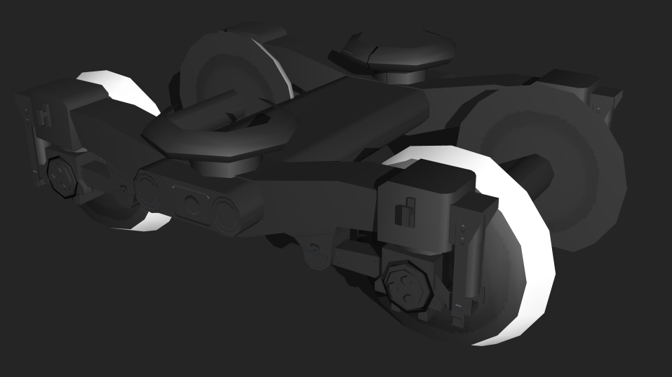 まだテクスチャを一切描いていないので、ポリゴン面通りの着色ですが、雰囲気はでてきてるかも。
